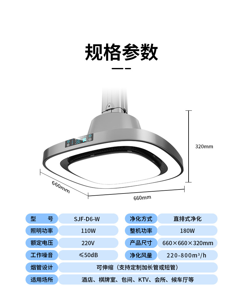 - 直排吸煙凈化燈強(qiáng)勁環(huán)吸四邊燈光D8-W