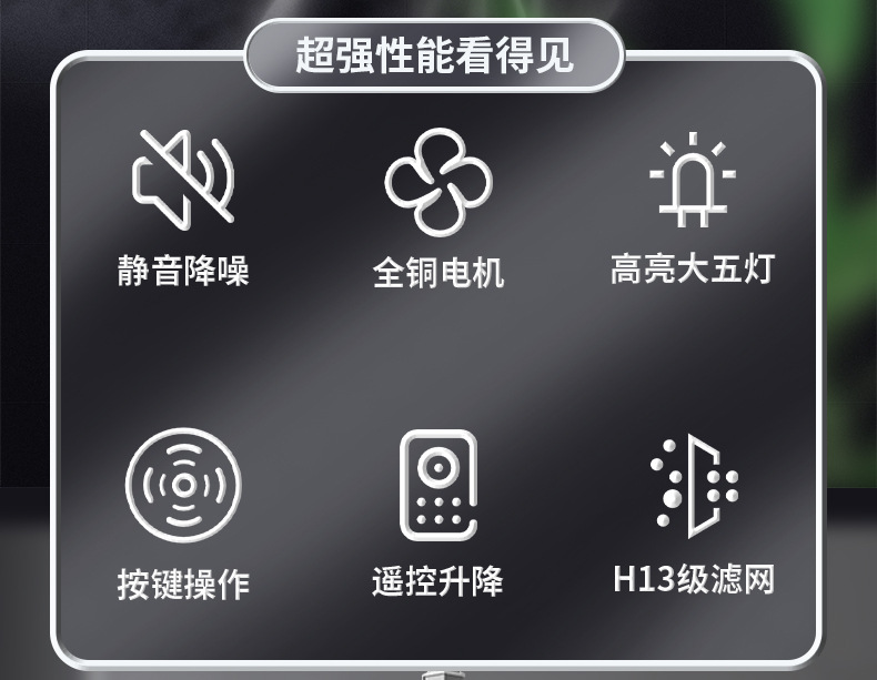 3.遙控升降,低噪強勁快速除煙